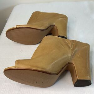 Tan leather heel with unique design. Heel 4 inches. Excellent pre owned condition