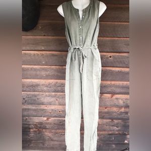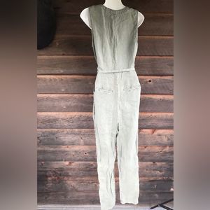Nicole Miller 100% Linen Overall Style Jumpsuit Lagenlook Size 4 Olive Green