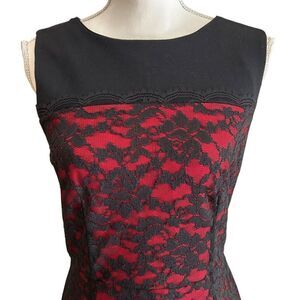 Nicole Miller Black & Red Lace Sheath Dress Size Medium