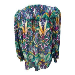 This elegant blouse by Nicole Miller showcases a relaxed fit with ruffled detailing, perfect for a sophisticated yet casual look. The long balloon sleeves add a touch of refinement, while the blue hue offers a versatile and timeless appeal. Ideal for both work and leisure, this top is a stylish addition to any wardrobe.