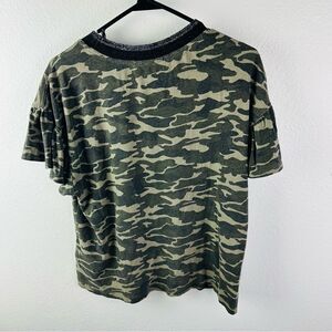 Nicole Miller Linen Blend Camo Ruffle Sleeve Tee Size S