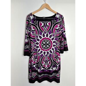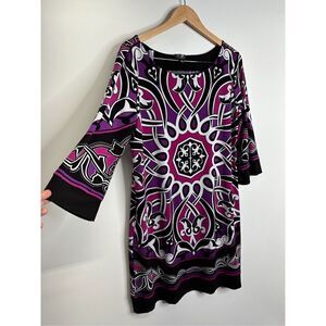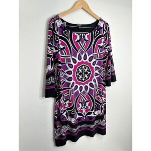Nicole Miller Shift Dress Womens Size Large Printed Cocktail Party Purple/Black