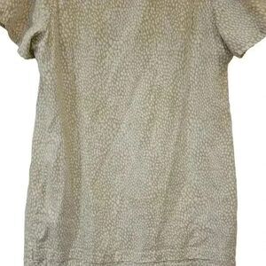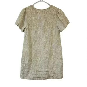 Nicole Miller Women's Green & White Floral Linen/Viscose V-Neck Short Sleeve Pleated Hem Pullover Dress EUC sz XL