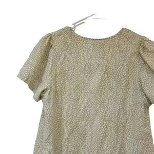 Nicole Miller Women's Green & White Floral Linen/Viscose V-Neck Short Sleeve Ple