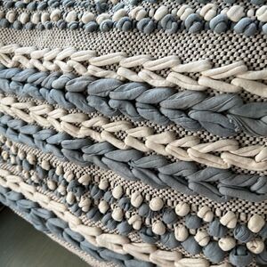 Pale blue, cream, black textured pillow.