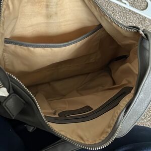Nicole Miller gray purse in decent condition. A few minor imperfections, but functionally sound. A few internal and external pockets. Long, adjustable crossbody strap.