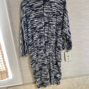 Nicole Miller black and white pattern three-quarter sleeve dress in size large. The waistband is elastic so that the top of the dress fold over the little skirt part.