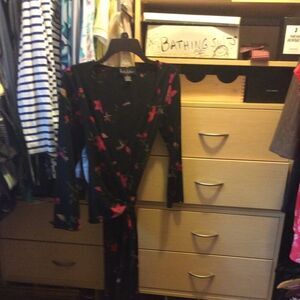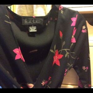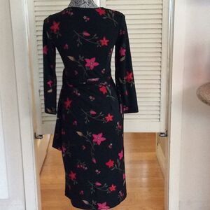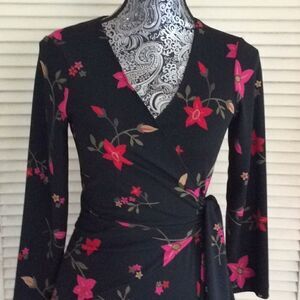 Nicole Miller black wrap floral dress secured in back. Size small excellent condition never worn. See approximate measurements color and condition in no filter pictures carefully cleaned with Lysol Laundry š§ŗ Sanitizer and stored sealed