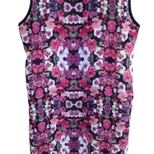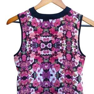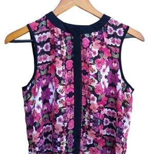Nicole Tunic Top Sleeveless Button Down Blouse Pansy Floral Pink Black Sz XS