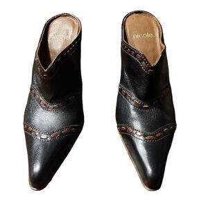 Nicole Women's Slip-on Black Leather Pointed Toe Heeled