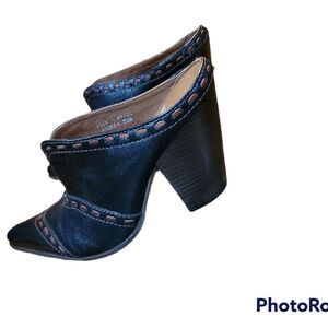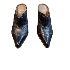 Dark Brown Color, 7.5 Size, Leather Material, Slip On, Western Style, Camel Stitches Details, Pointed Toe, Thick Heeled, Soft Feel, Gently Wear, Like New, Comfortable Wear, Casual Wear, Summer/ Fall/Spring Wear, Excellent Condition.