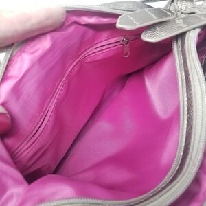 Very good condition. Inside lining is hot pink and like new condition. Bag is approximately 12" x 8" x 1.5". Strap is approximately 49" and is fully adjustable.
