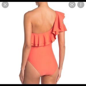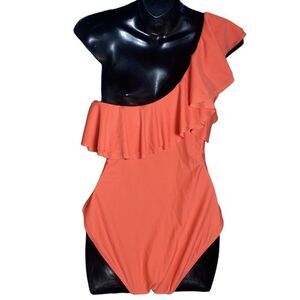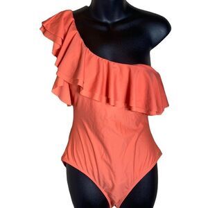 Nicole miller women’s large coral one shoulder ruffle one piece swimsuit