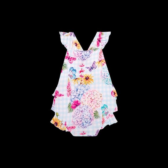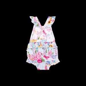Adorable blooms will delight your little one on this soft and stretchy bubble romper ideal for warmer days.