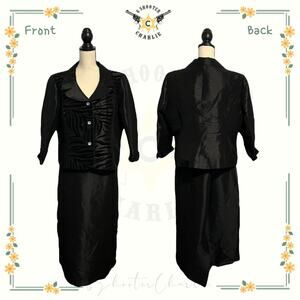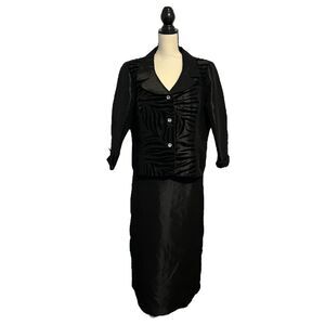 Nicolette Skirt Suit Size 18 Black Satin Zebra Print Church Suit Textured Bling