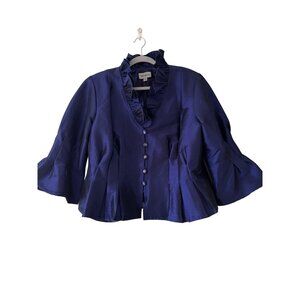 Elevate your wardrobe with this exquisite ruffled blazer, combining elegance and comfort. The rich purple hue captures attention, while the premium blend of materials ensures durability and a comfortable fit. Ideal for adding a touch of sophistication to your ensemble, this blazer seamlessly transitions from day to night.