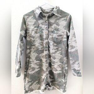 Nicoli Camouflage Romper Small Long Sleeve Utility Style Button Front Cotton