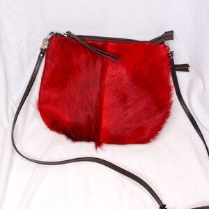 Nicoli Shoulder Bag Purse Red Leather Fur NWT