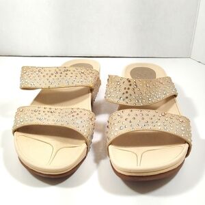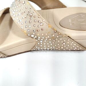 Nicoli cream rhinestone stones rubber slippers Size: 8