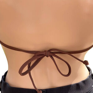 Nicolita Morocan Women Brown Backless Twisted Front Halter Bikini Swim Top