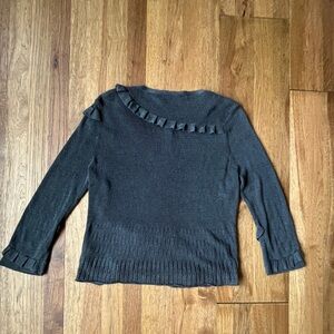 Nie + Zoe Grey Silk Linen Ruffle Cardigan Womens’s Sz XL Business Travel Cottage