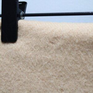 Nieman Marcus Vintage Crest Embroidered Tan Lambswool Rectangle Fringed Scarf