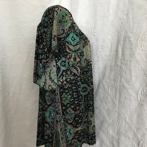 Gorgeous flutter sleeve black an green paisley print silk jersey tunic top mini dress by Nieves Lavi