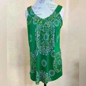 Nieves Lavi- Silk Tank Top With Asian Inspired Print Size Large EUC!!