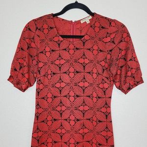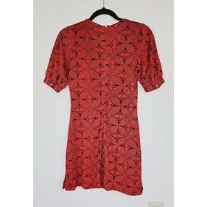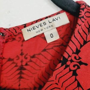 Nieves Lavi Women's 100% Silk Red & Black Puff Sleeve Mini Dress. Size 0