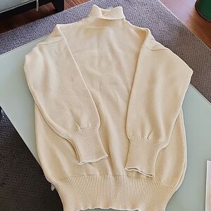 Freshly dry cleaned, in a pastel yellow color. It's a men's but I think its cute as a dress, with a pair of Doc Marten boots and leggings! Very warm, with lots of stretch. This exact sweater is for sale on another platform for $150! B68.3221