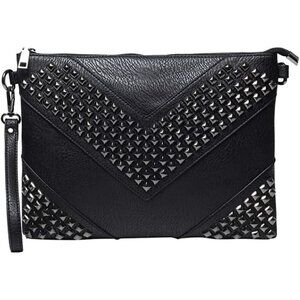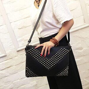 ✨Nigedu Women Black Oversized Leather Clutch Studded Wristlet Envelope Handbag