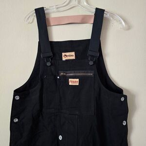 Durable black overalls with adjustable straps. Multiple pockets for convenience.