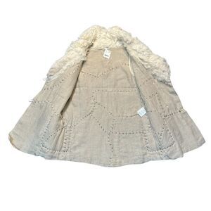 A one-of-a-kind layering piece, this Free People jacket features a pieced-together design with ultra-soft lambskin, contrast knit detailing, and bold embroidered accents. Designed with an exaggerated lambs wool fur collar, cable knit sleeves, oversized patch pockets, and button-front closures. Fully lined for comfort, this jacket blends luxe materials like 100% lambskin and wool for texture and warmth.
