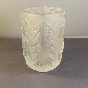 Night Before Christmas Oval Votive Candle Holder Frosted Glass Sleigh Farmhouse