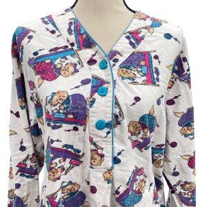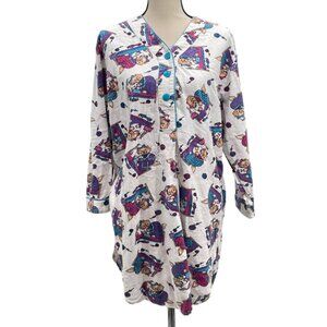 Night Gear Sleepwear Vintage 80's All Over Sleepy Cats Varsity Shirt Nightgown