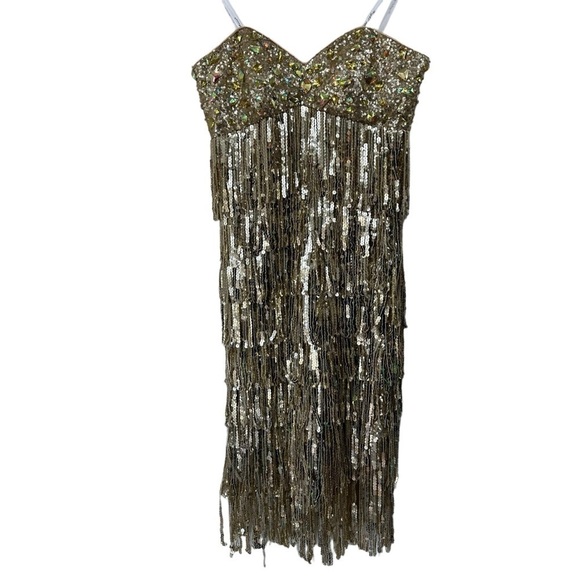 Night Moves by ALLURE Gold Sequin Evening Flapper Gatsby Sleeveless Dress, 10