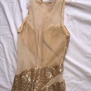 Slim fitting and covered in sequins, this gawn amazes with sheer geometric panels.