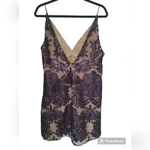 Night Shimmers Sequin Mini Dress, purple sequins on a nude background, slip dress, size medium preloved euc no flaws like new condition