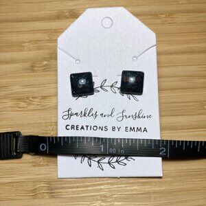 These epoxy resin night sky square stud earrings feature nickel free posts perfect for sensitive ears