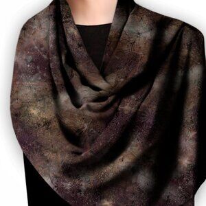 The large 36″ square lends enchanted versatility and signature style with multitudes of fashionable options such as a light over-the-shoulder wrap, head dress or neck wrap. 100% silk (105g/m2, 12 momme), with luxurious, silky feel and ultra flowing effect. Black baby-lock, machine rolled, finished hem. High shine surface with matte underside High drapability with a liquid feel Original art by deb schlier. Silk Charmeuse provides vibrant color and strong care durability. Extra lightweight and super soft, ideal for scarves with its graceful drape and satin hand feel. Silk Charmeuse is a favorite choice for scarves and offers exquisite softness and a relaxed drape. Because it’s made from ultra-fine naturally derived fibers, it breathes well and is especially comfortable during hot weather. This fabric has a 50% print “bleed-through” visible on the backside. Care: Dry cleaning is recommended but can be hand washed separately in cold water. Do not wring or twist. Add a mild softener to restore softness during wash cycle if needed. Hang dry is best. If desired, use a medium iron with the printed side down Each item is individually stitched and hand-finished. A completely UNIQUE artisan signature item that hasn’t been mass produced or distributed.