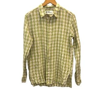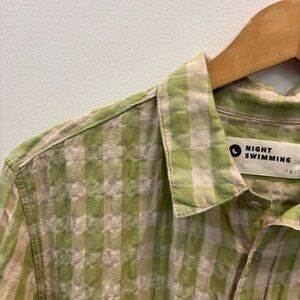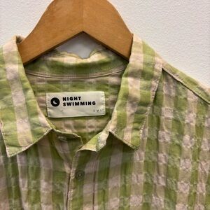 Great Night Swimming Gingham Plaid Button Down Shirt. Gauzy Linen Cotton Blend.