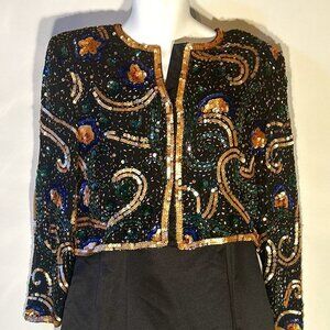 Night Vogue SZS Vintage Silk sequin cropped jacket Artsy Old Glamour Formal 80's