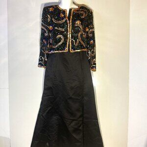 Night Vogue SZ S Vintage Silk sequin cropped jacket Artsy Old Glamour Formal Prom 80's