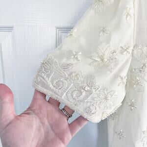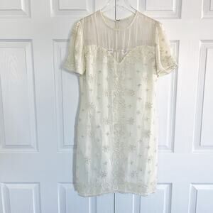 Night Vogue Vintage Ivory Silk Floral Beaded Sheath Dress