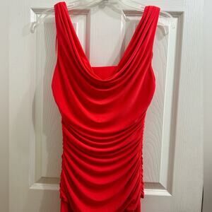 Night Way Bright Coral Gathered Stretch Cowl Neck Formal Maxi Dress 8 Draped M