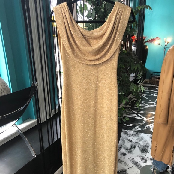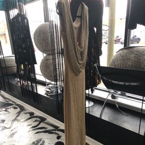 Night Way Collection evening gown, full length beautiful gold with metallic texture. Scoop back, sleeveless. This dress is absolutely stunning. All reasonable offers will be considered