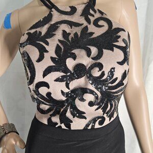 Night Way Collections Black and Cream Prom Dress