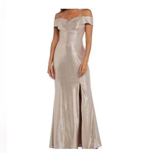 Night Way Collections Metallic Off-Shoulder Maxi Dress