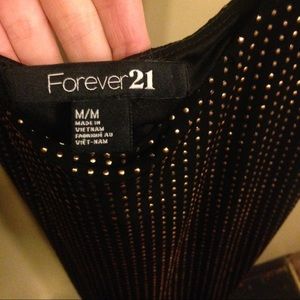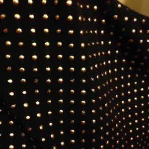 Fun and sexy little black dress with gold studs covering the entire dress. Looks sparkly in pictures. Really comfortable material that moves with you. Make an offer