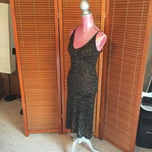 Bronze and turquoise metallic never looked better. Sophisticated chic from Moda International in a sexy v-neck slip dress. All eyes on you all night. Never worn. Excellent condition. 83% rayon 7% other fibers. 35 inches from the V.